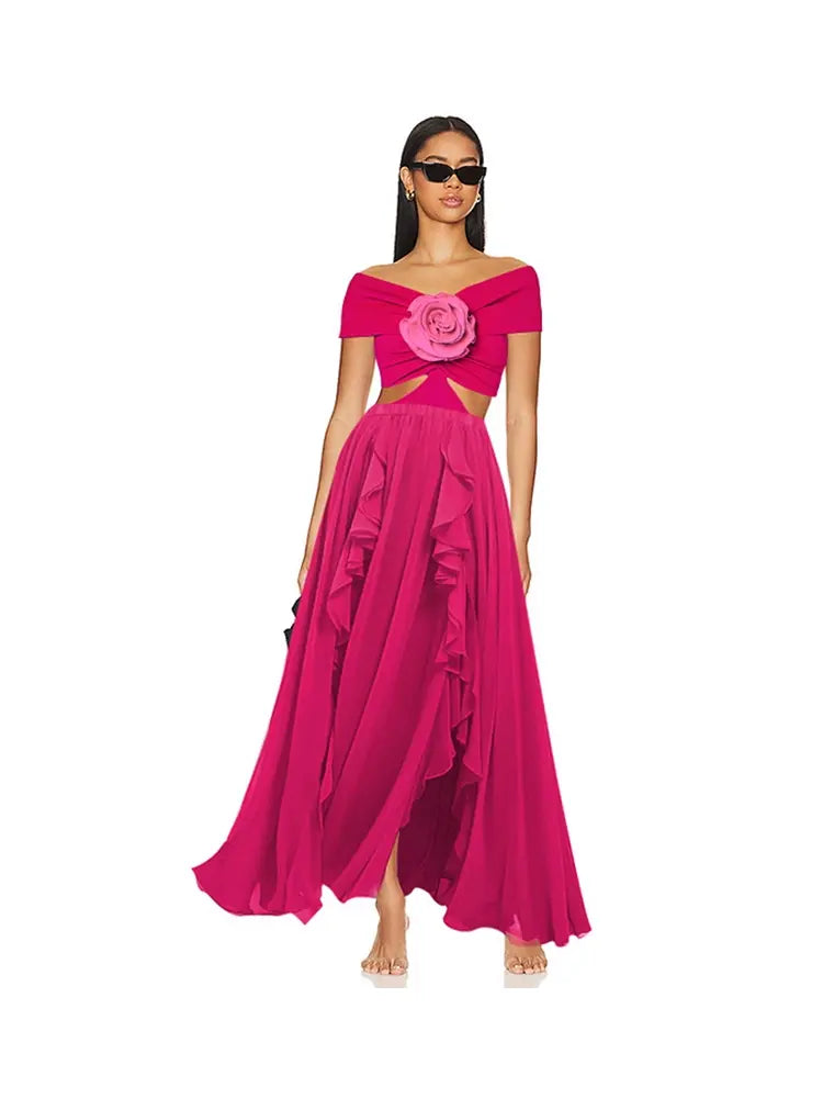 This stylish new swimsuit set blends romantic floral embellishments with modern cutout detailing, creating a bold yet feminine look. The one-piece silhouette is designed to accentuate curves while offering a secure and flattering fit, crafted from high-quality stretch fabric for comfort and mobility. The delicate 3D flower decorations add dimension and charm, while the matching piece—such as a skirt or beach cover-up—completes the coordinated ensemble for a polished vacation style.