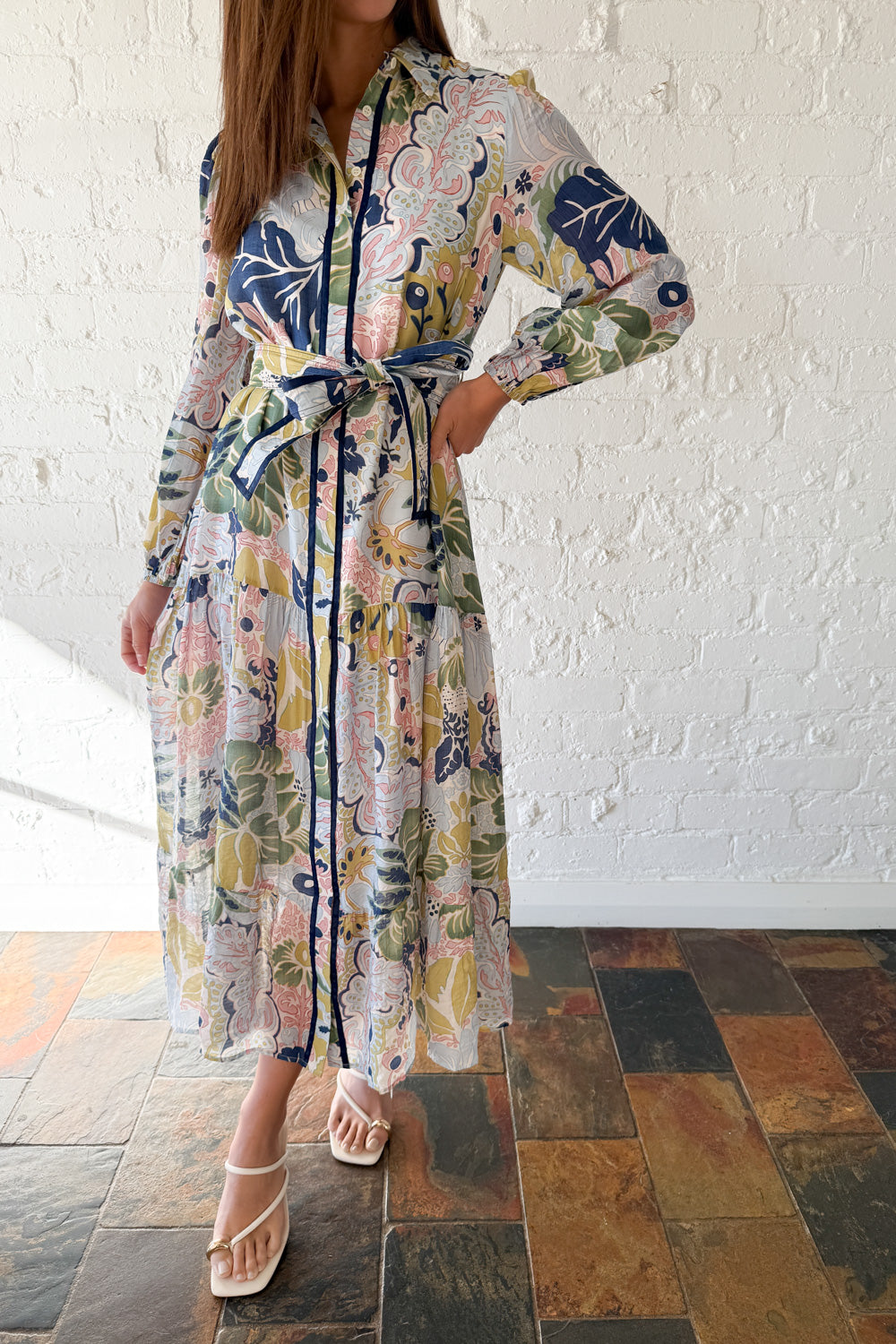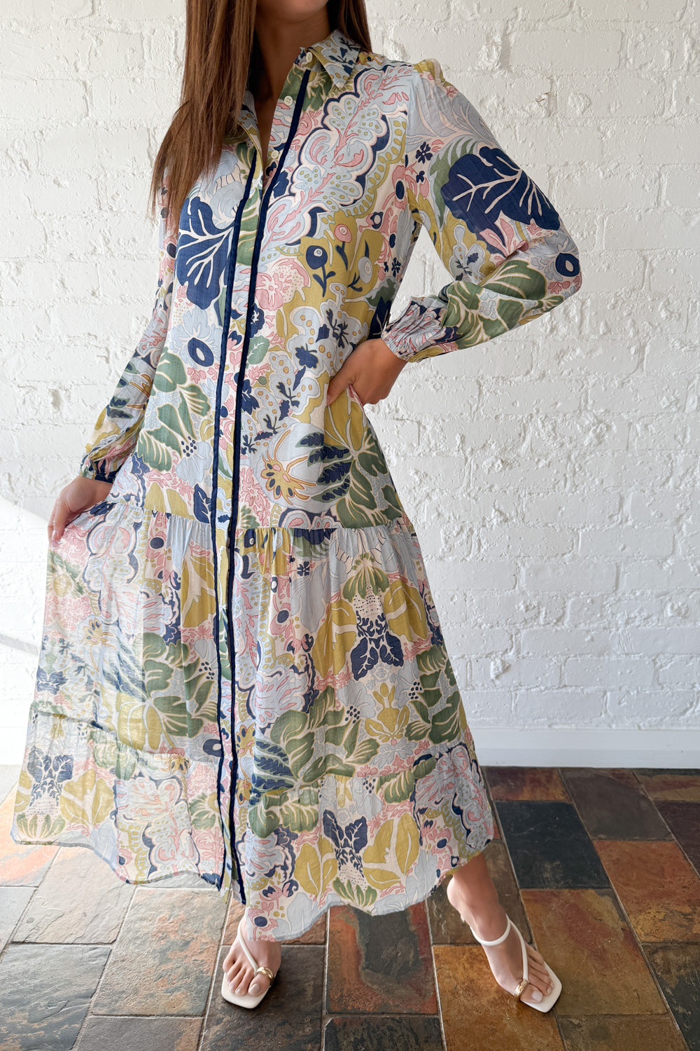 A dress version of our popular Julie Shirt, this dress is an elevated kind of shirt dress - a little bit fancy, yet totally wearable. A flattering shape which looks 10/10 whether it’s belted or worn loose, and the cuffs are elastic - so sleeves can be worn long or pulled up.