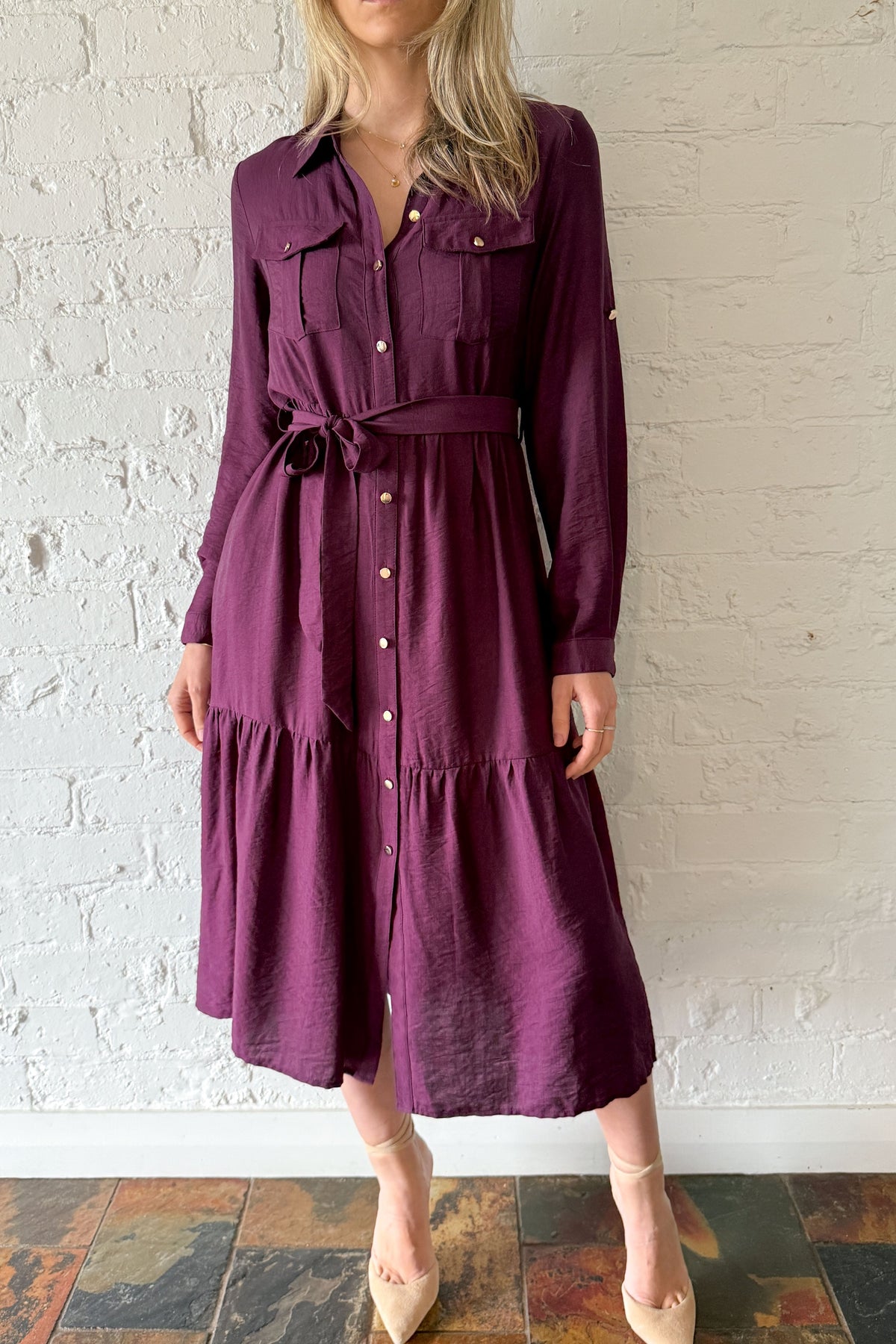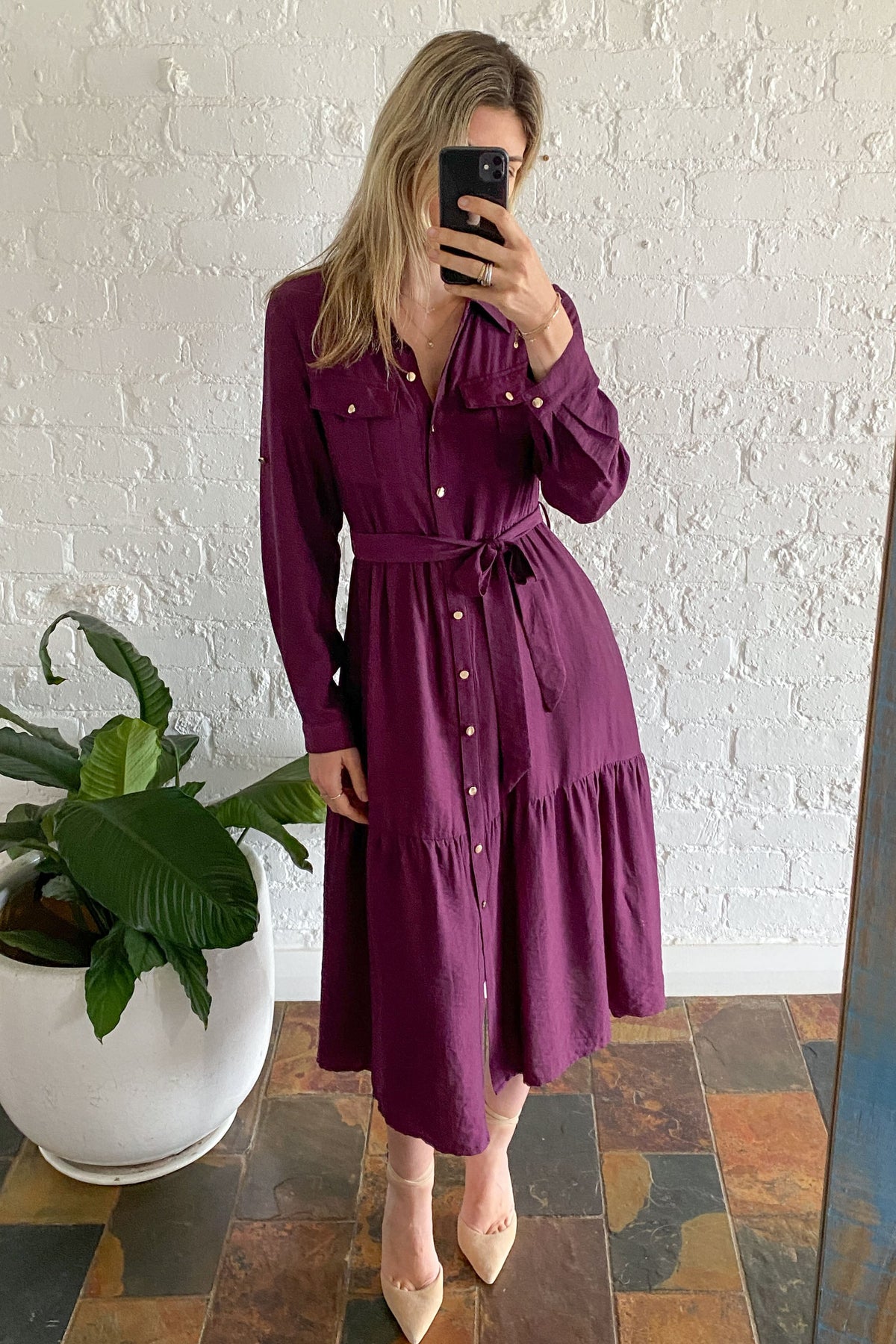 So effortlessly chic and easy to wear! The gold buttons, cuffed sleeves, and pockets give it just enough shape, while the lightweight fabric keeps things light and breezy. There are belt loops, so you wear with the matching belt or one of your own, it’s a dress you’ll want to wear over and over again.