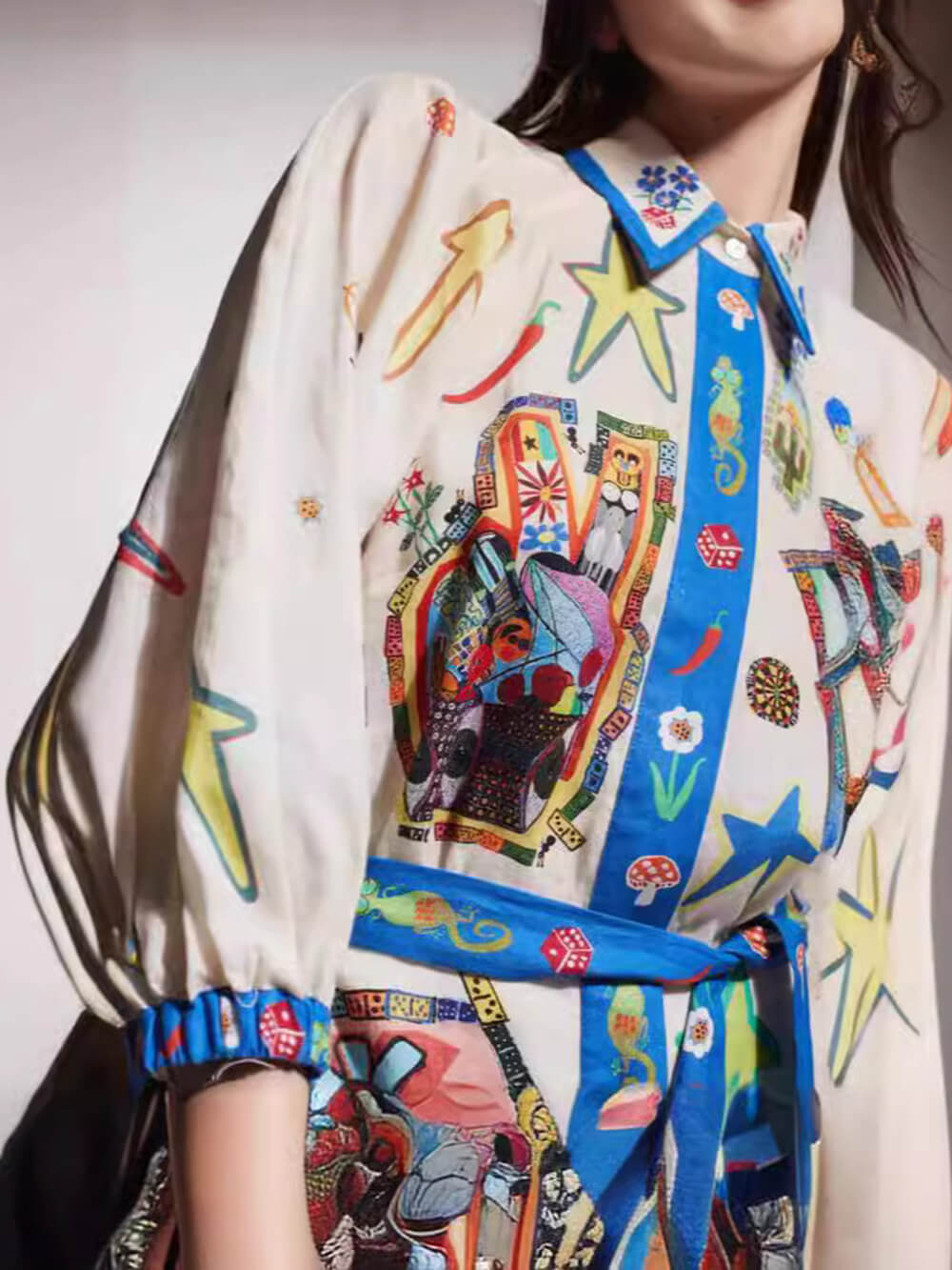 Crafted from high quality fabric. this dress has a soft and breathable feel. making it suitable for all-day wear. The subtle and unique print adds a touch of personality. while the cardigan style ensures a comfortable fit.
